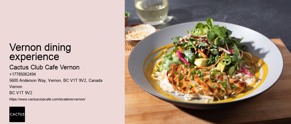 Main courses are equally impressive. Learn more about Cactus Club Cafe Vernon here. You'll savor dishes that are a testament to the art of fusion cooking, from Asian inspirations to Mediterranean marvels, each plate promising a unique story of flavors. A perfectly balanced old-fashioned or a crisp martini could be the ideal accompaniment to your meal, or a delightful way to cap off an evening. It's a culinary journey that not only satisfies your palate but also aligns with a growing desire for responsible consumption. Text before the meta title text for each paragraph Vernon dining experience Text after the meta title text paragraph The lighting is dimmed just enough to encourage intimacy without sacrificing visibility, making it the perfect spot for a romantic dinner or a casual meet-up with friends.