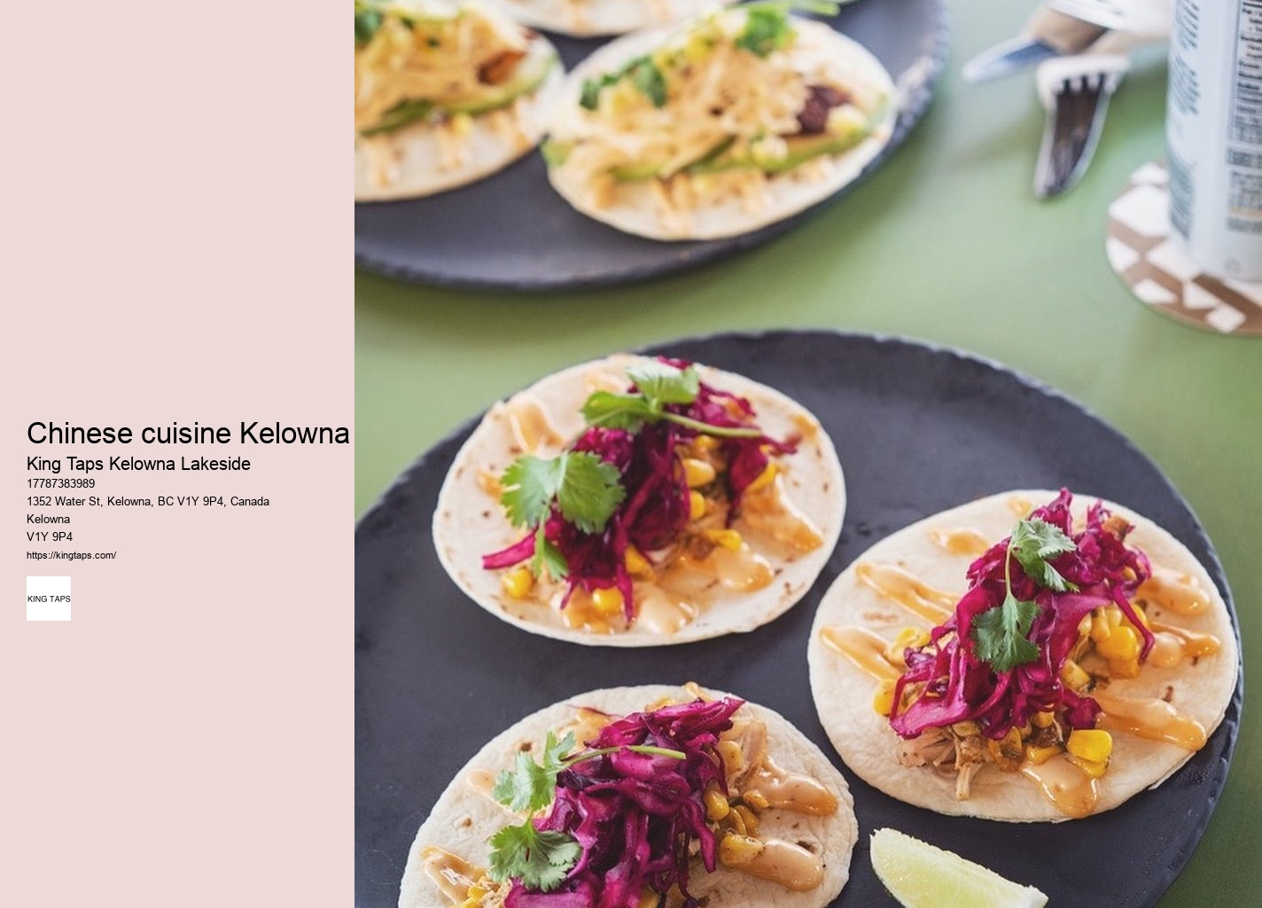 They're on hand to suggest unique touches that can elevate your gathering, making sure it stands out. Text before the meta title text for each paragraph Chinese cuisine Kelowna Text after the meta title text paragraph You'll also get an insider's look at the passionate culinary team working behind the scenes and hear firsthand from guests who've had the pleasure of dining there. Family-owned As you contemplate your next dining adventure, imagine a place where the food isn't just prepared, but crafted with a passion for flavor and innovation. After soaking in the scenic route and the breathtaking views, you'll find King Taps Kelowna's culinary creations are equally impressive, offering a feast for your senses.