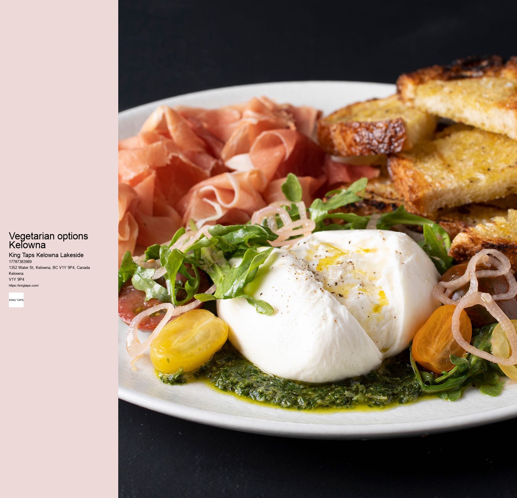 Whether you're celebrating a special day, catching up with friends, or simply craving a delicious meal by the water, King Taps has got you covered. Vegetarian options You're invited to embark on a journey where the beauty of Kelowna's natural landscapes meets unparalleled culinary mastery. Vegan options Next, you'll be tempted by the Lakeside Burger, featuring grass-fed Okanagan beef, aged cheddar, and a secret sauce that's all wrapped up in a freshly baked brioche bun. Lunch specials