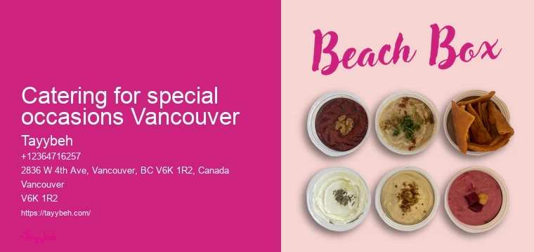 They create an atmosphere that reflects the Syrian way of life, incorporating music, art, and storytelling into their catering services. These recipes aren't just meals; they're stories of resilience, community, and family. Learn more about Catering Company Vancouver here. It's not just a meal; it's a journey through the flavors, aromas, and traditions of Syria, making every event an affair to remember. Learn more about Catering for special occasions Vancouver here Jasmine, celebrating her graduation, shared her gratitude for Tayybeh's attentive service and the ability to cater to various dietary needs without compromising on taste or authenticity.