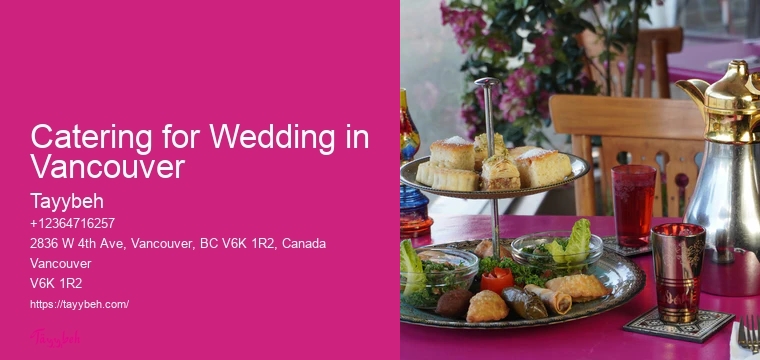 Every customer has the opportunity to tailor their event menu to perfection at Tayybeh, ensuring a unique dining experience that aligns with personal tastes and dietary requirements. They've opted for biodegradable and compostable containers and utensils, understanding the importance of minimizing waste in the catering industry. The ambiance, inspired by Syrian heritage, complements the culinary journey, making every celebration even more special. This ensures that every dish served at your event meets your expectations and reflects the authentic Syrian culinary journey Tayybeh is renowned for. From transforming mundane office lunches into feasts of flavors that speak of heritage and tradition to turning weddings into unforgettable celebrations of love and cultural journey, Tayybeh has carved a niche for itself. Learn more about Catering for Wedding in Vancouver here